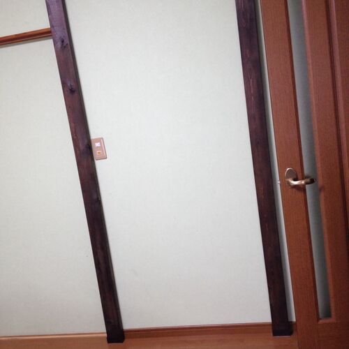 ラブリコを使って犬のゲージの上に棚をつくりました!2x4の板で支柱を2本立ててあります。↓ここまでは前につくりました。棚板を2枚買ってきました。ステインで着色します。こんな感じになりました〜↓素人がつくったにしてはいいですよね!色もゲージとクレー…